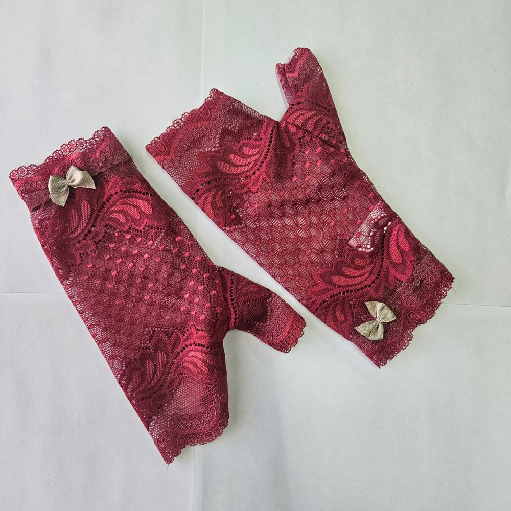 Guantes cortos confeccionados en puntilla , delicado detalle de moñito, ideal para completar tu estilo sexy JF y también para salir con un outfit único .