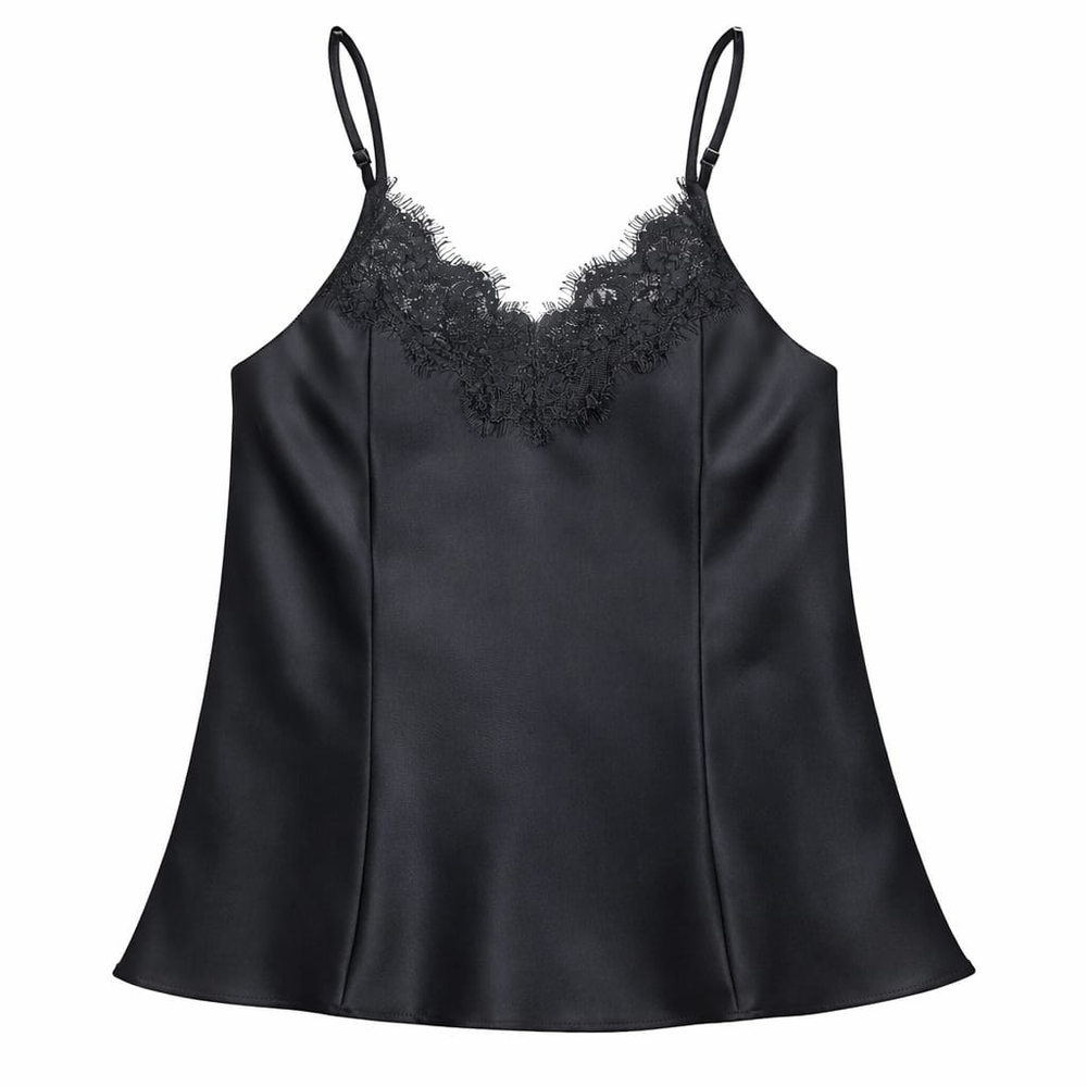 Una musculosa que es puro glamour: satén brillante y puntilla delicada. Podés dormir con ella o salir con estilo combinándola con un jean o un blazer. ¡Un básico que brilla!